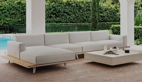 Für die meisten Terrassen, Gärten und Balkone bieten wasserabweisende Kissen in Kombination mit robusten Stoffen eine praktische, komfortable und langlebige Lösung.