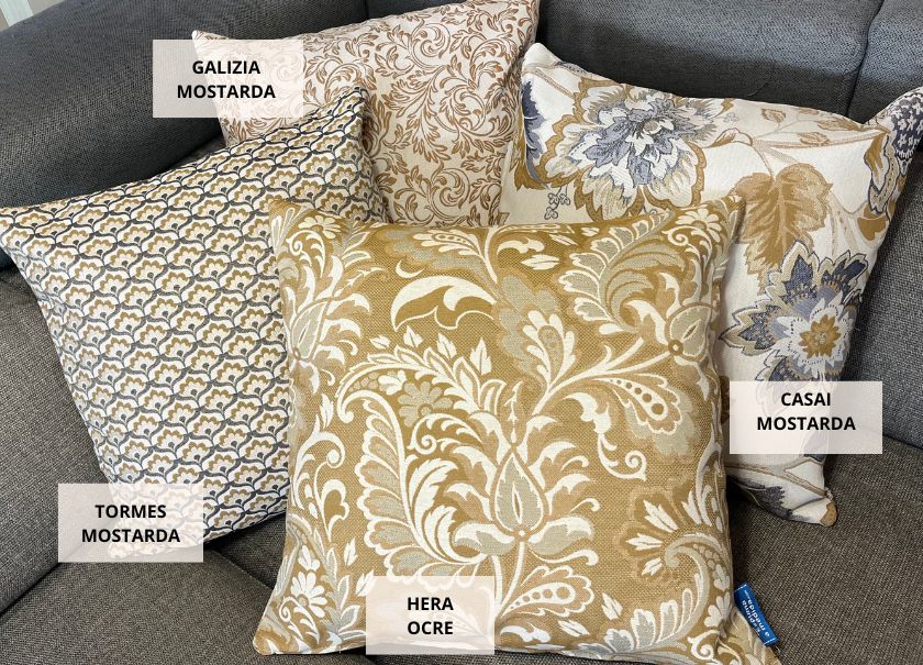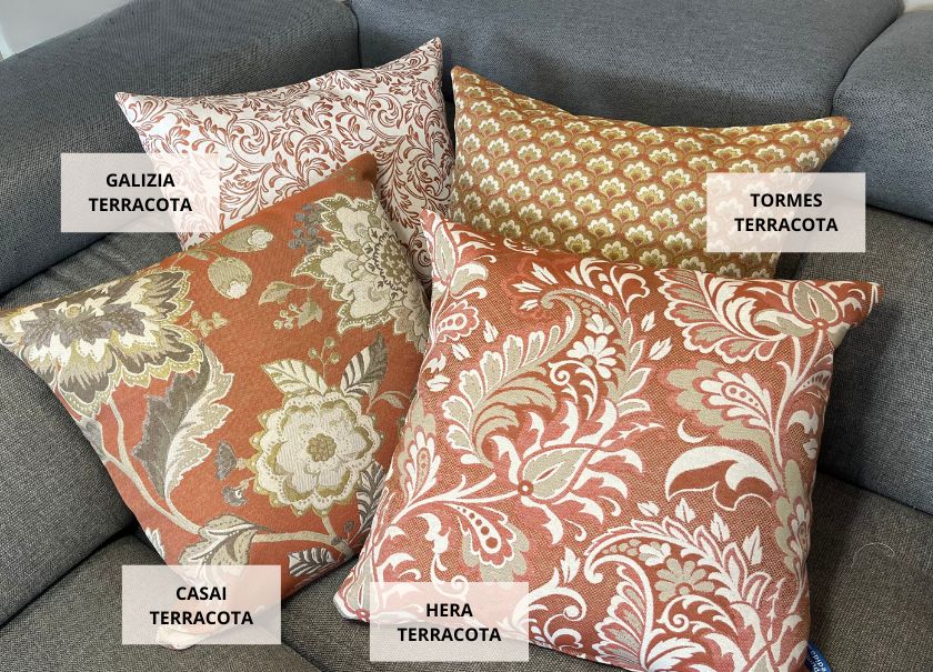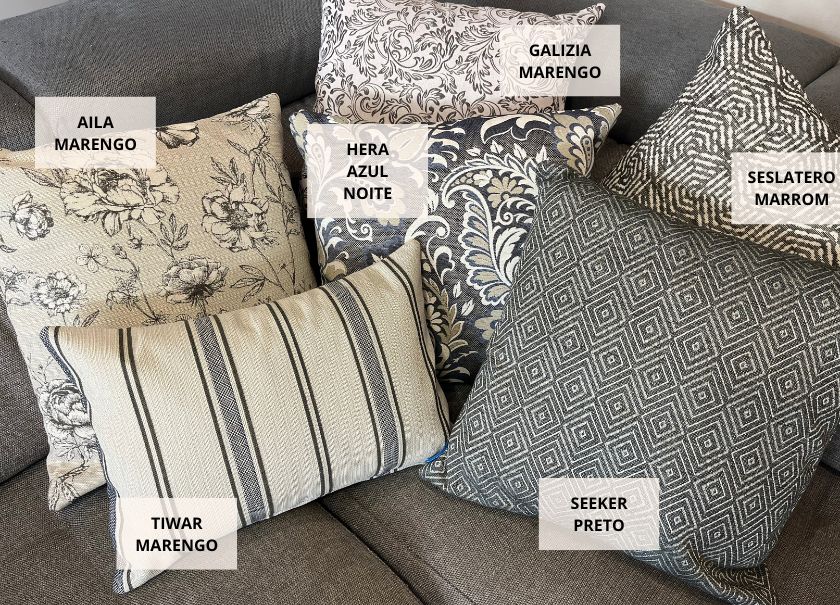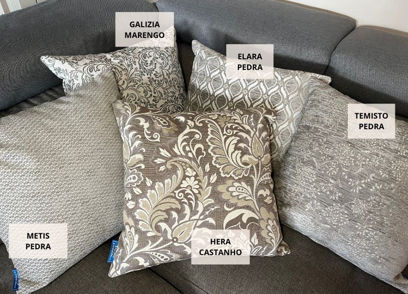 Estampados florais e jacquards em tons terra, ocres e bordeaux misturam-se harmoniosamente com lisos e semi-lisos, criando ambientes sofisticados e acolhedores.